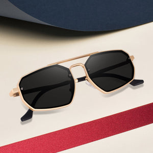 Dervin's Geometric Octagonal Metal Rim Sunglasses combine retro charm with modern flair, offering a distinctive octagonal shape and sleek metal rim. Designed for both men and women, these sunglasses enhance any summer look with their unique geometric style. The durable metal frame ensures long-lasting wear, while the fashionable design adds a sophisticated touch to your outfit. Perfect for sunny days, these sunglasses provide both style and functionality, making them an essential accessory for any wardrobe.