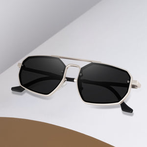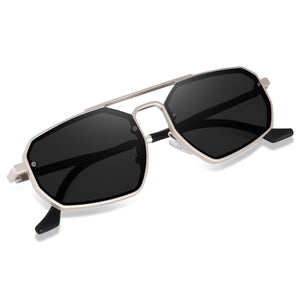 Geometric Octagonal Metal Rim Sunglasses: Retro Summer Style for Men and Women