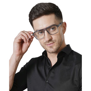 Elevate your style with these contemporary unisex spectacle frames that perfectly blend fashion with functionality. The lightweight design features a sophisticated square shape that complements various face shapes and personal styles. Crafted in an elegant translucent grey colour with contrasting black temple tips, these frames offer both durability and comfort for everyday wear. The modern geometric silhouette makes a subtle yet distinctive statement, while the sturdy construction ensures long-lasting performance. These versatile frames are ideal for both casual and formal settings, making them a practical choice for anyone seeking a refined aesthetic. The thoughtfully designed temple arms provide a secure, comfortable fit, while the squared lenses offer a generous field of vision. Perfect for those who appreciate minimalist design with a touch of contemporary flair, these frames are an excellent choice for your prescription lenses.