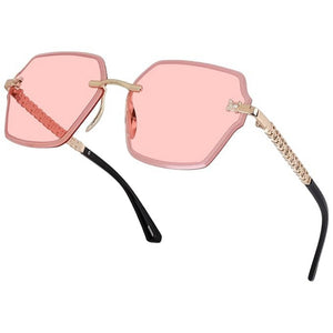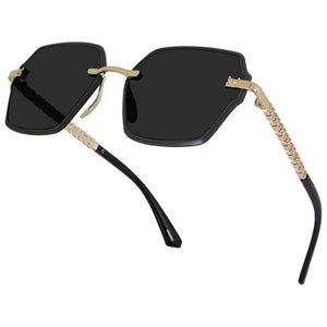 Perfect for fashion-forward women, these Dervin rimless oversized sunglasses are a must-have accessory for those who appreciate style with substance. Whether paired with casual wear or elegant outfits, they make a chic and practical addition to your collection. Stay trendy, stay protected, and make a bold statement with these exquisite sunglasses.