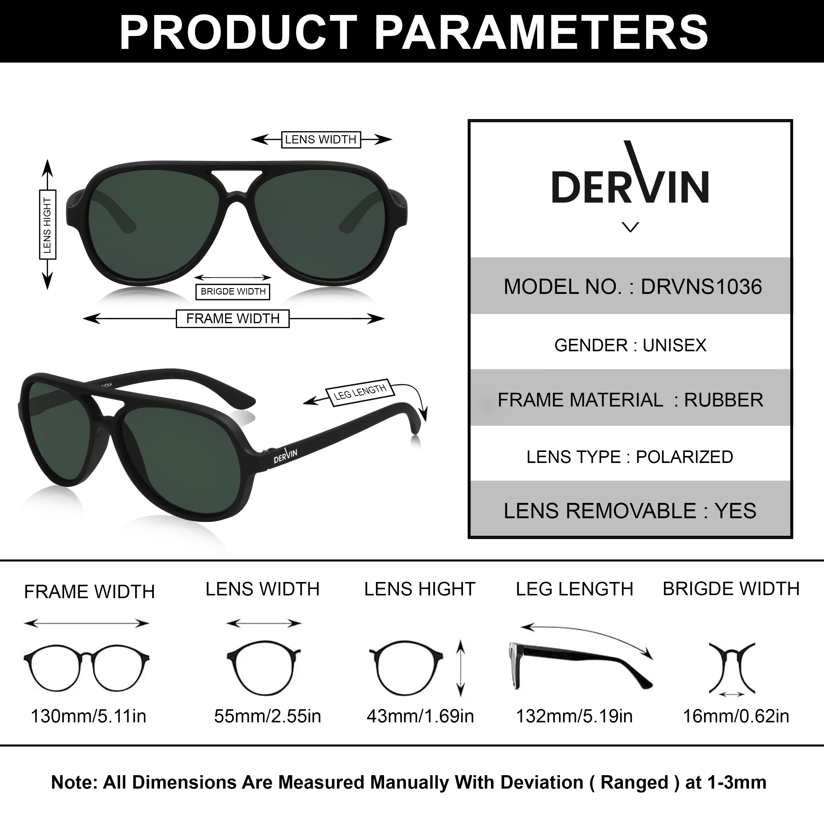 Dervin UV Protected Polarized Aviator Pilot Sunglasses for Men and Women