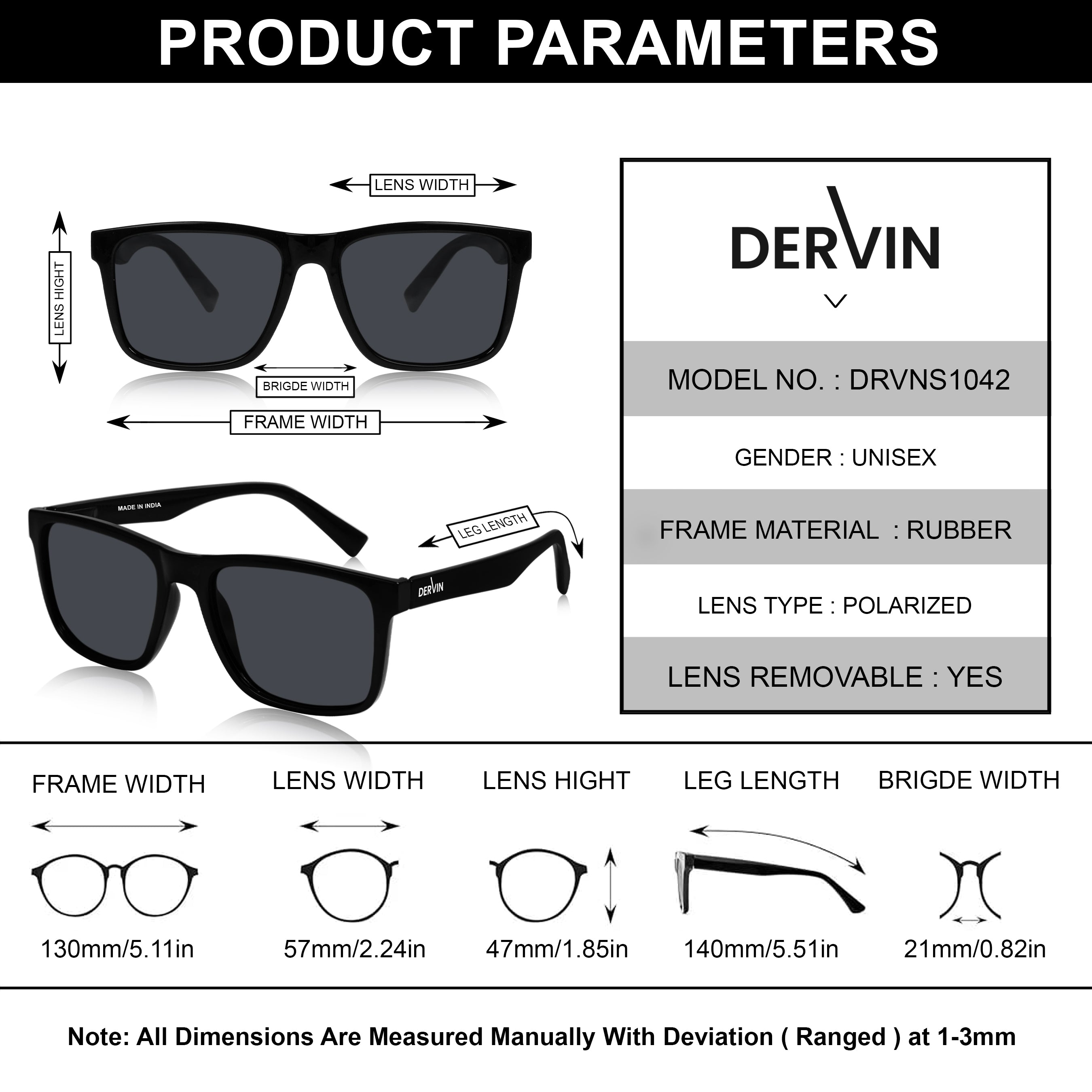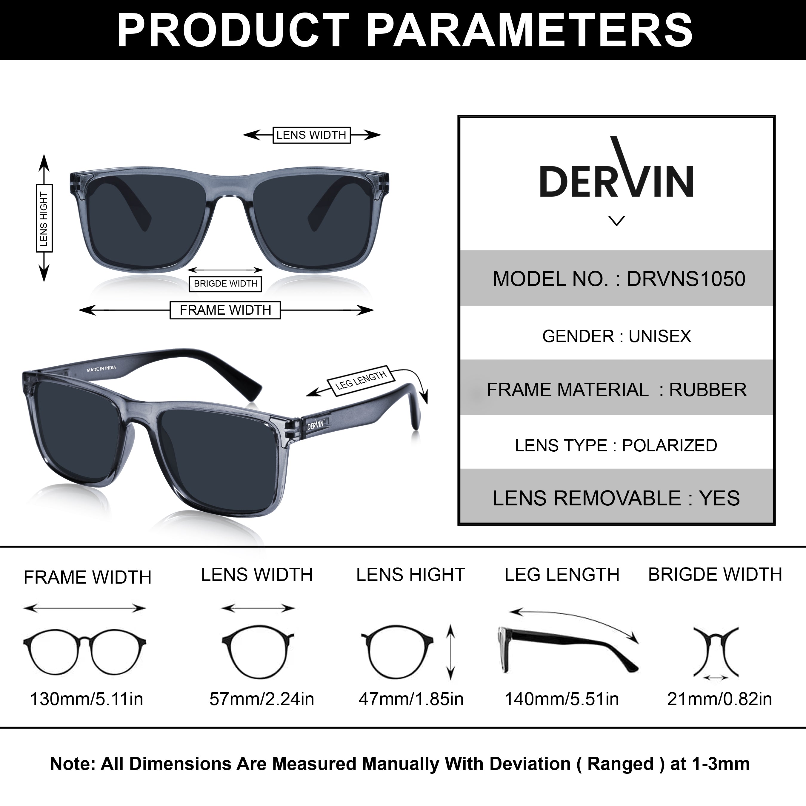 Dervin UV Protected Polarized Square Sunglasses for Men and Women