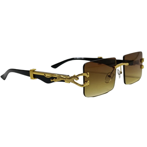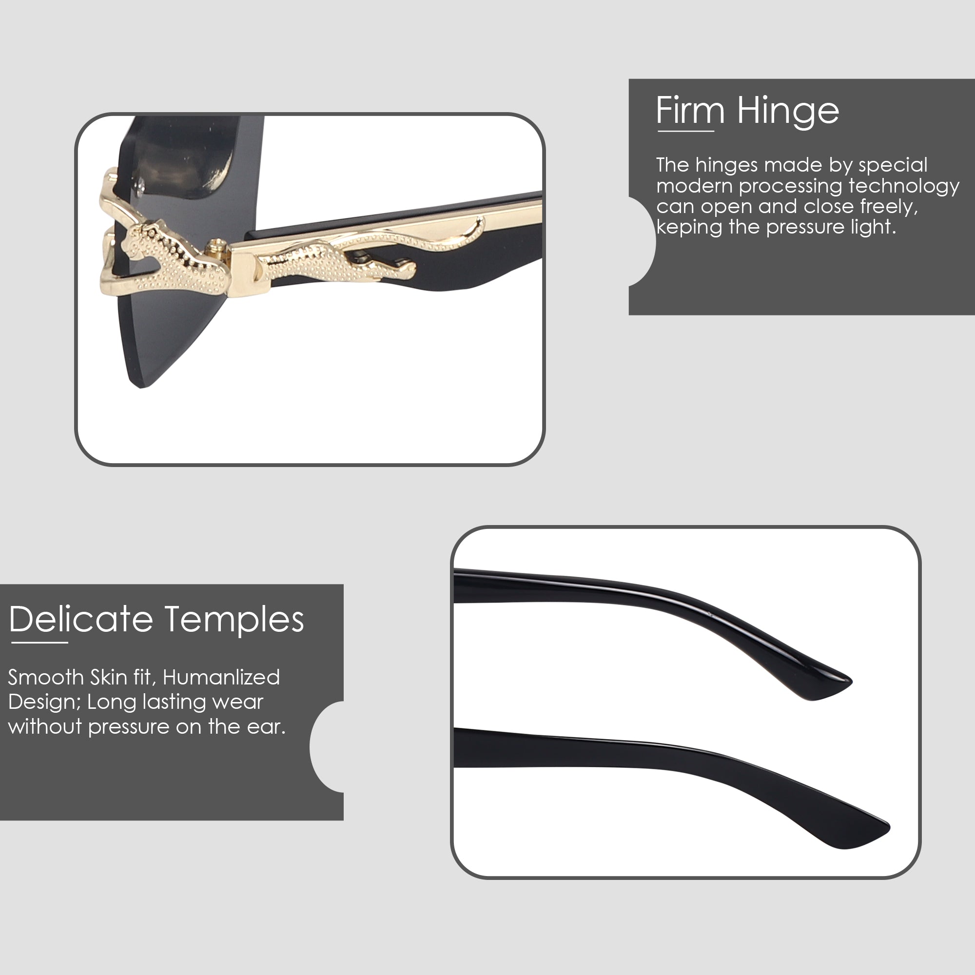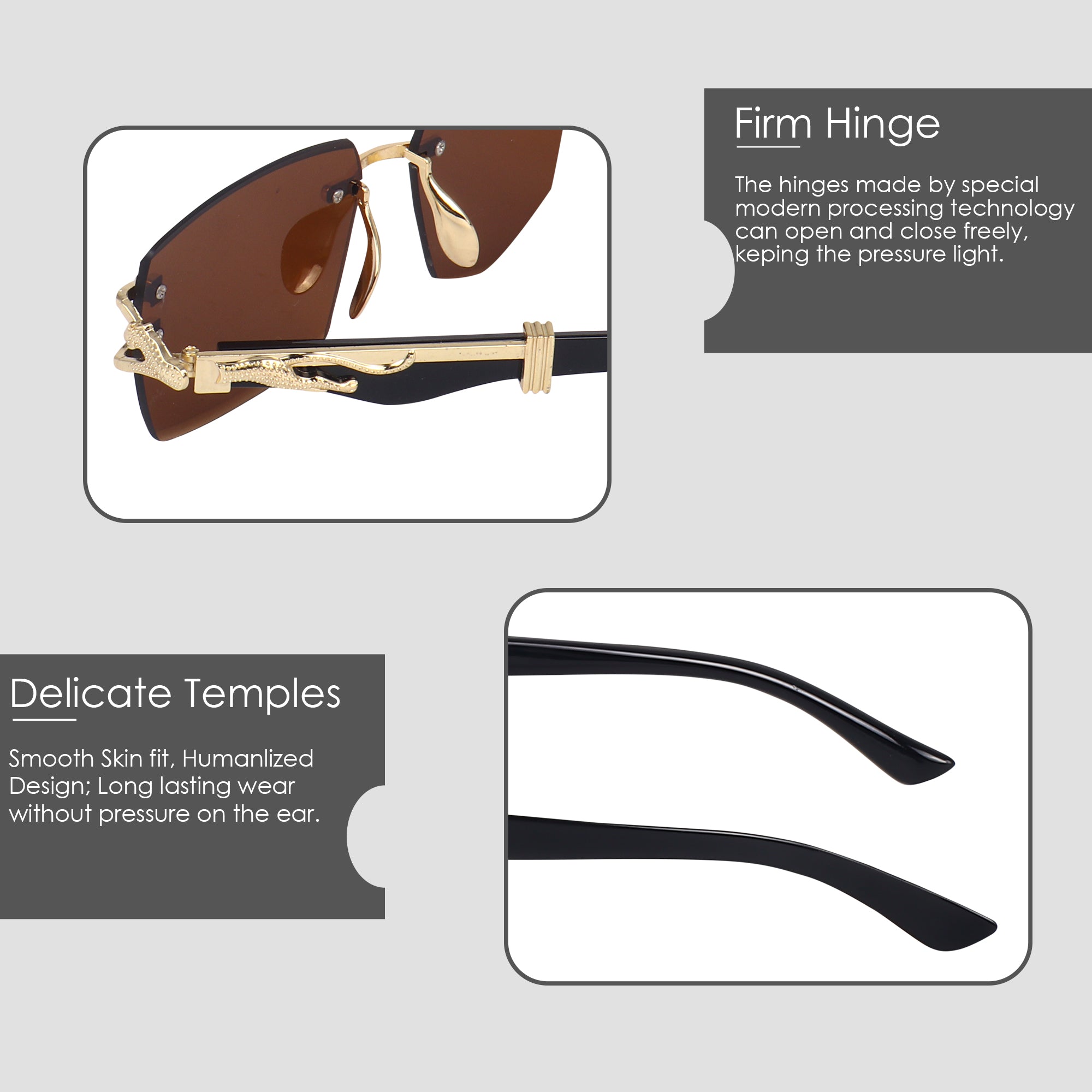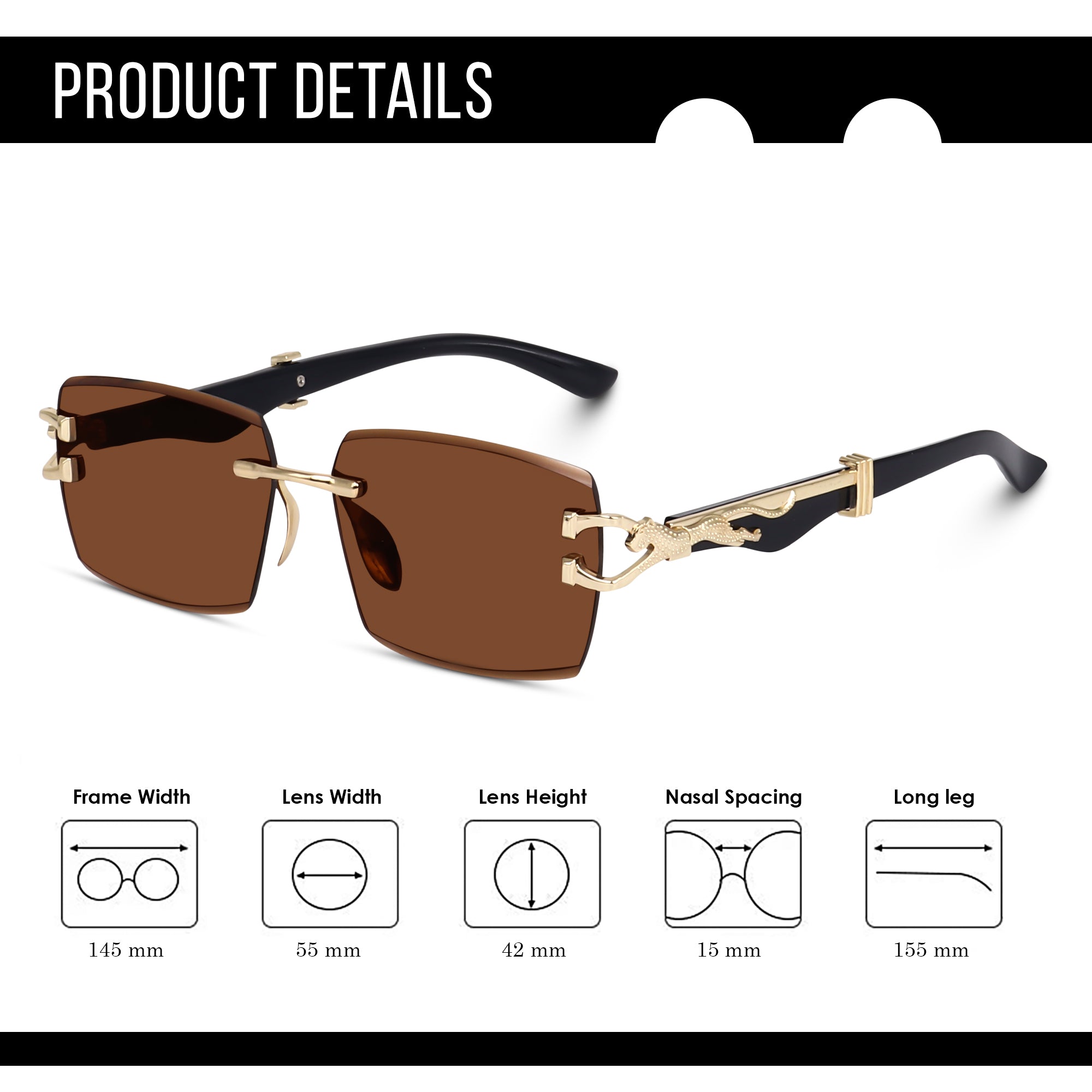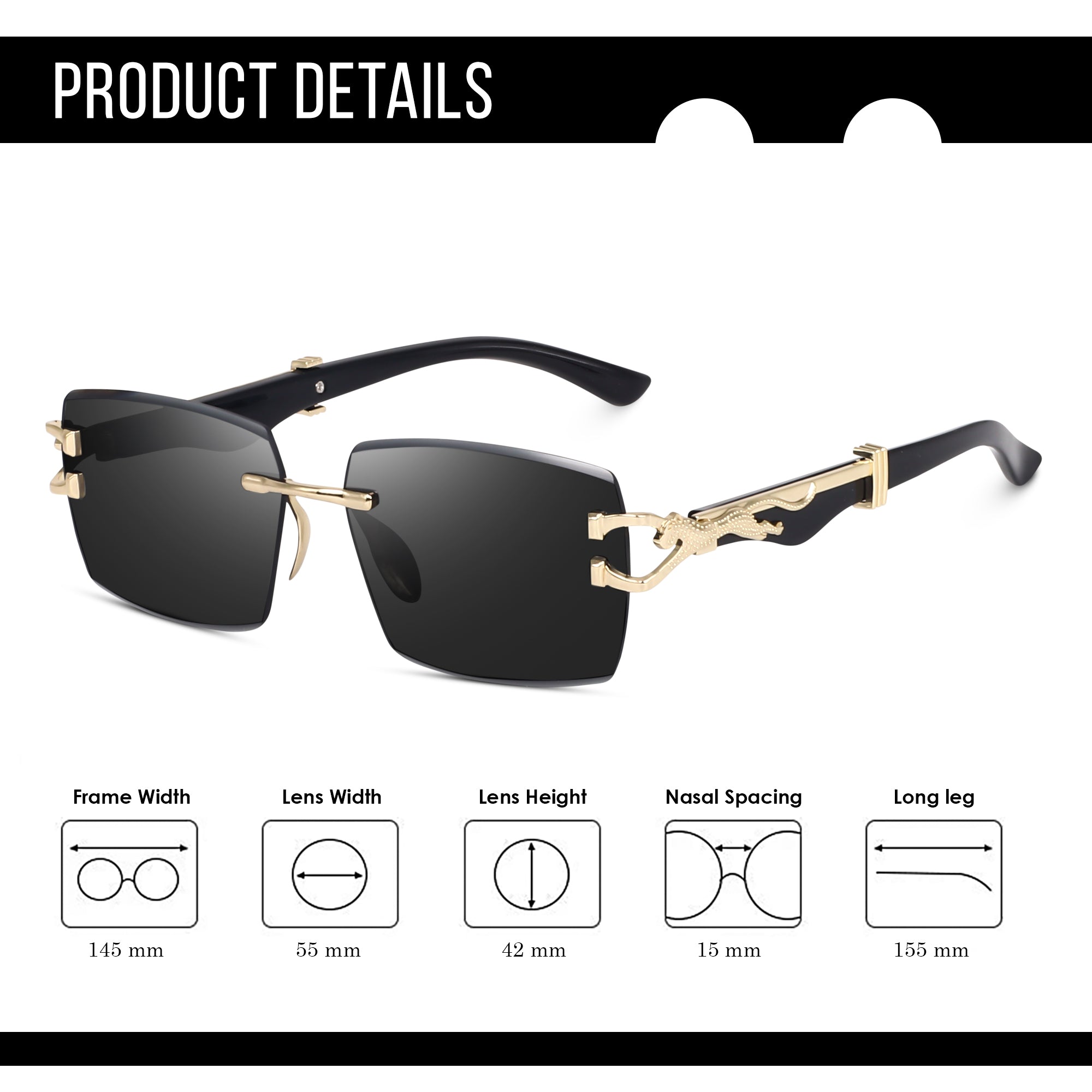 Crafted with a rimless rectangular frame, these sunglasses offer a sleek, minimalistic look that complements various face shapes. The lightweight design ensures all-day comfort, while the durable construction guarantees long-lasting wear. The premium-quality lenses are UV-protected, shielding your eyes from harmful UVA and UVB rays to enhance visual clarity and reduce glare.