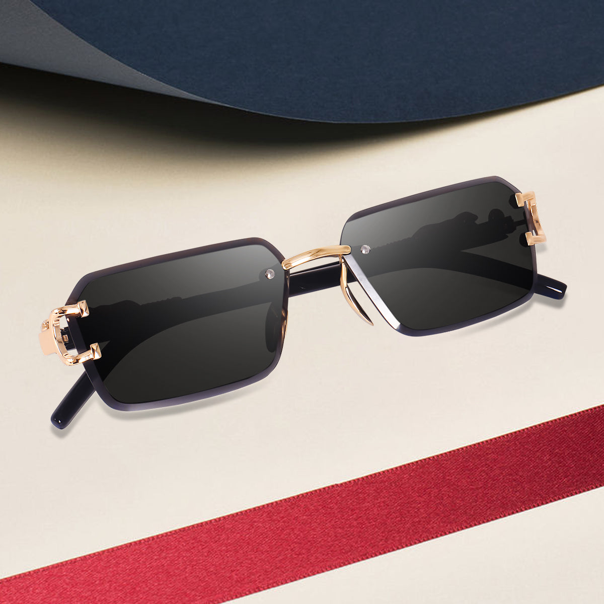 Experience modern elegance with Dervin's UV protected rimless rectangular sunglasses, designed for both men and women.